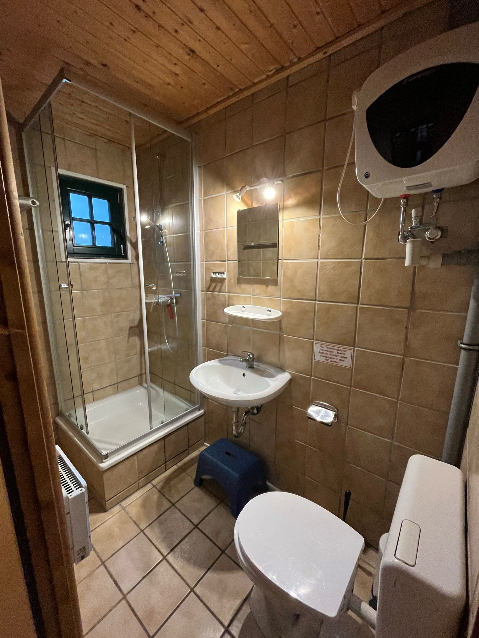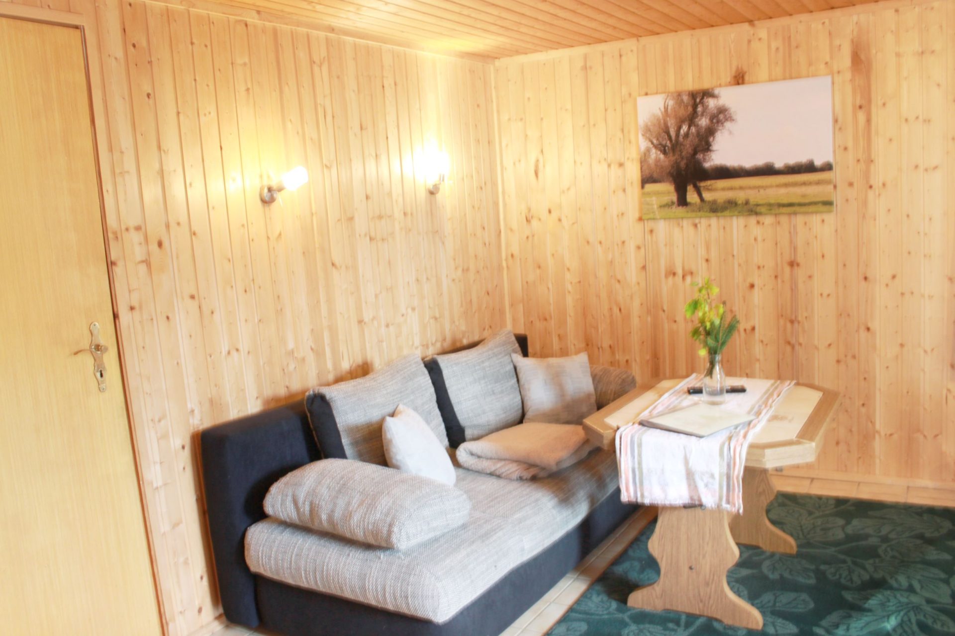 Unsere Waldnester sind einheitlich ausgestattet. Im Wohnbereich befindet sich eine Pantryküche mit zwei Herdplatten und ein Kühlschrank mit kleinem Eisfach. Zur kleinen Küche gehört eine Kaffeemaschine, ein Wasserkocher, ein Toaster, Kochutensilien, Geschirr, Besteck, Töpfe und eine Pfanne. Eine gemütliche Sitzecke mit Sat-TV lädt zum Verweilen ein. Das kleine Badezimmer verfügt über eine Dusche, einem WC und einem Waschbecken. In den Waldnestern 1, 5, 7, 8 und 13 befindet sich auch ein kleines Fenster im Bad.