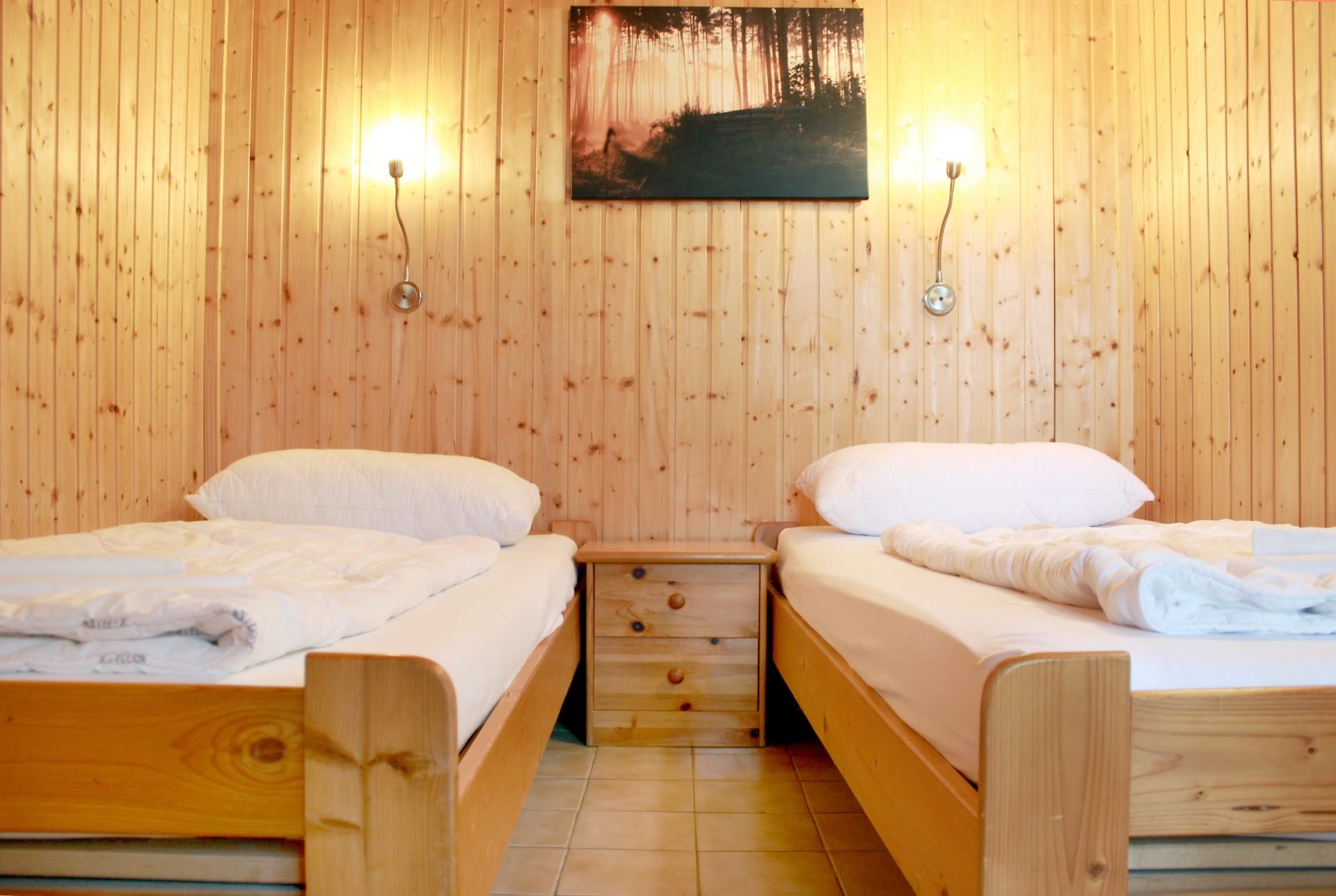 Bei den Waldnester 2 bis 4 gibt es ein Schlafzimmer mit zwei getrennten Betten und im Wohnbereich eine ausziehbare Schlafcouch für zwei Personen. Die anderen Waldnester sind mit zwei Schlafzimmern mit je zwei getrennten Betten ausgestattet. Im Wohnbereich ist eine weitere Aufbettungsmöglichkeit verfügbar. Im Waldnest 1 befindet sich zudem ein Kamin und eine Waschmaschine.
